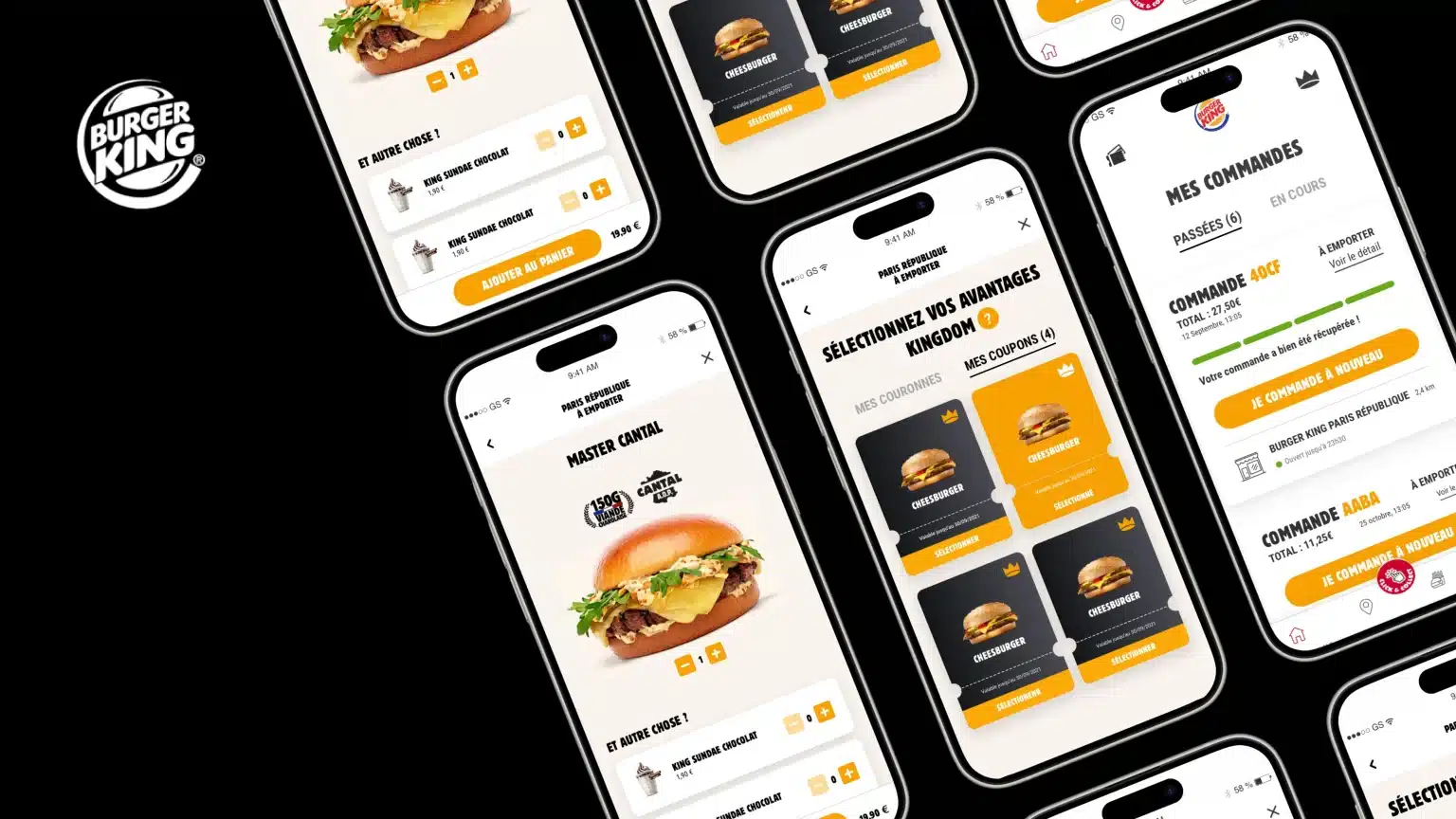 Burger King souhaitait moderniser son écosystème digital en améliorant ses parcours utilisateurs sur ses applications mobiles, bornes en magasin, et plateforme web. Cela inclut le Click & Collect, la commande en livraison, ainsi que la gestion des coupons Kingdoms pour fidéliser les clients.